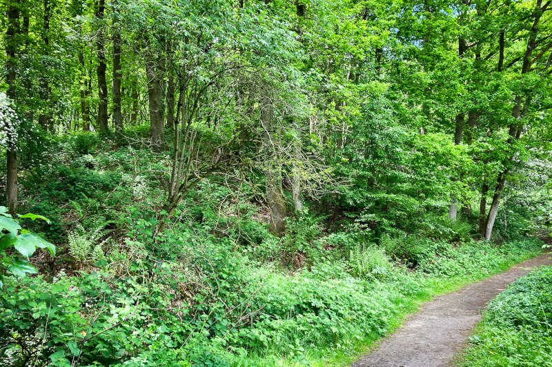 Near the start of the trail in Flass Vale is the thickly shrouded mound of Maiden’s Bower