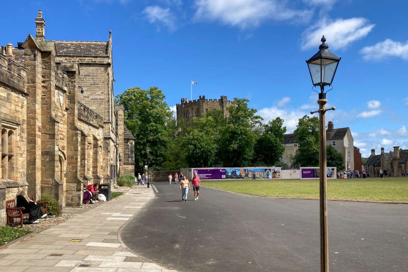 On the other side of the main road (Crossgate Peth), turn left and continue, eventually downhill to the junction (on the right) with Blind Lane. Cross the road at the end of Blind Lane and continue on Quarry Heads Lane. Stay on the main road, turning right at the corner of Durham School (founded in 1414 by Bishop Thomas Langley less than a century after the Battle of Neville’s Cross, ‘Old Dunelmians’ include Anthony Salvin (architect), Brian Horrocks (soldier), Alexander Armstrong (actor/comedian) and the more recently notorious ‘political advisor’ Dominic Cummings).