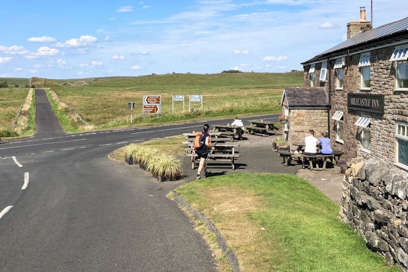 Continue on the trail, past a couple of lime kilns — yet again obscured by vegetation at the height of the season — to reach the busy B6318 (Military Road). Cross with care, to a narrow but well defined FP on the other side (it’s quite close to the road though). Continue 200 m to NEWBRIDGE FARM where there’s an optional detour. EITHER continue 250 m on the B6318 to the Milecastle Inn OR bear L, following the fingerpost, on the Haltwhistle Burn Trail alongside the wall (it’s overgrown in summer so try to avoid being nettled).