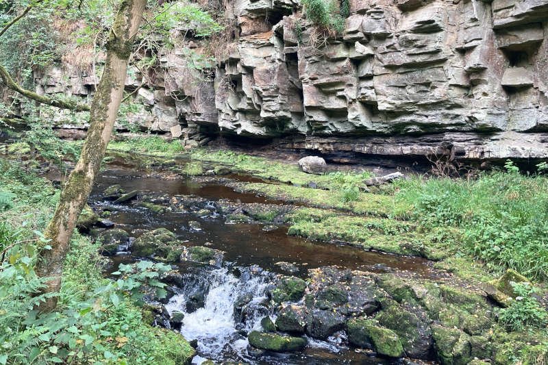 In the book it’s listed simply as “Haltwhistle Burn” exploring familiar sedimentary sequences of the Stainmore Formation — it’s Carboniferous geology (300-360 million years) similar to that found in neighbouring Weardale. The route with which it’s associated is based on the popular Haltwhistle Burn Trail which explores former industrial sites in the attractive, wooded gorge through which the Haltwhistle Burn flows.