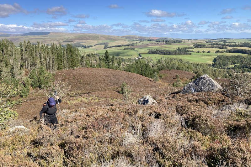 Thrown off somewhat, we left the trail earlier than we should have and paid the price for trying to ascend directly towards the stone. The heather is thick, the upper slopes steep and Diane’s tolerance low. She toughed it out nevertheless but “looks” were exchanged.