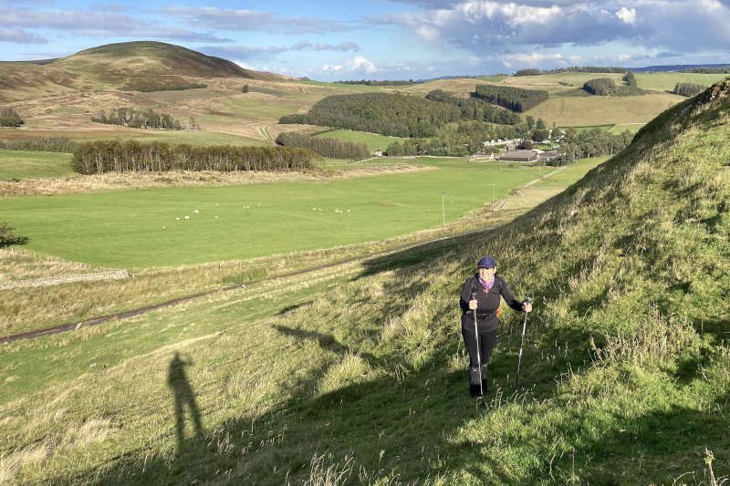 By now it was around 4 pm. It had taken us about three-and-a-half hours to cover not that many more miles. I decided to curtail the planned route, opting to continue on an ancient but still popular trail known as Clennell Street. This would allow us to visit the site of an Iron-Age hillfort at Castle Hills, overlooking Alwinton.