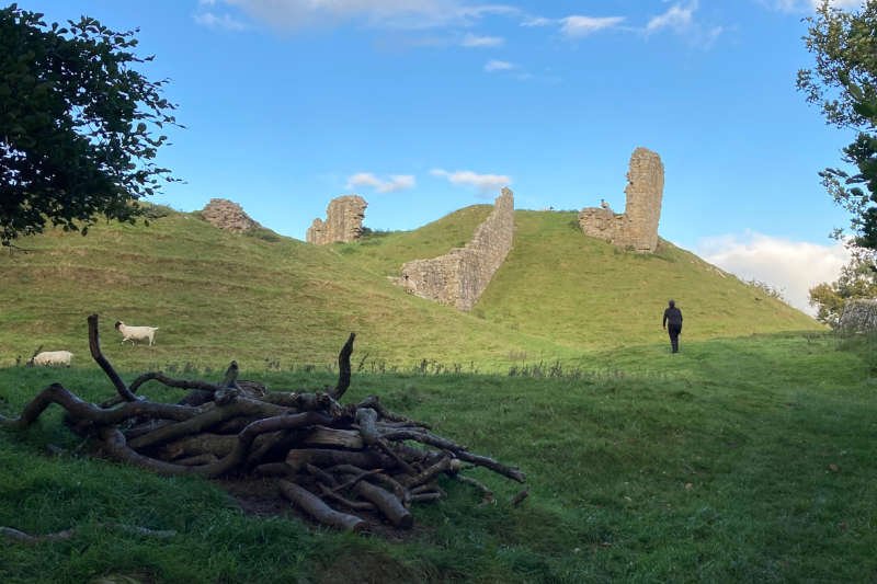 Once we were back on the road the final couple of miles to the car passed quickly. On arrival we dropped off the dead-weight of mushrooms and continued uphill to the castle. Only now was the glorious evening sunshine occasionally being blocked by a couple of ominously large rain clouds. These were the first we’d seen all day, despite the forecast.