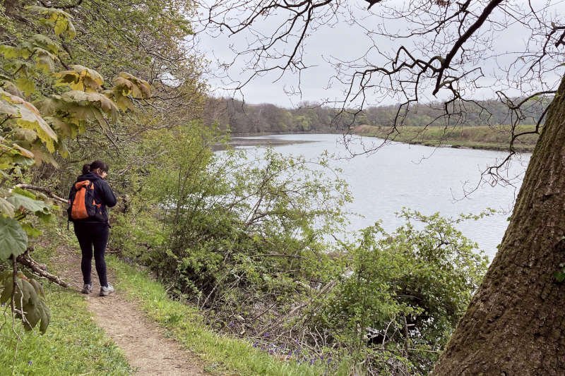 We pulled up in Beatrice Terrance around 10 am, all in good time for a local 15-mile walk and struck out immediately, heading briefly upstream alongside a river where the high tide was just beginning to turn. Turning right after crossing the bridge was a new experience for me; it’s almost embarrassing to admit how excited I am to walk a new route, especially if it’s local. I’d brought along the GPS for navigation – just in case – but as I suspected, it proved to be unnecessary.
