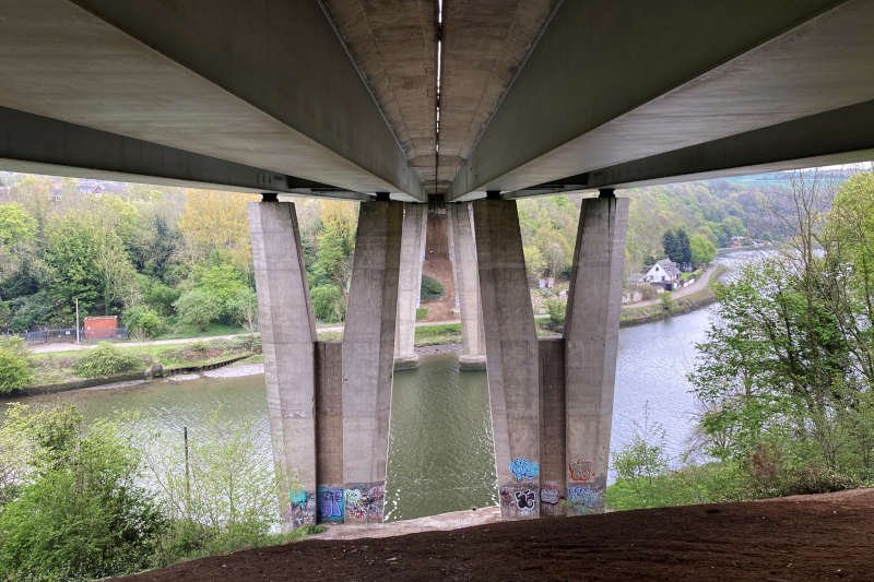 In order to tick off four miles it’s necessary to make a steep climb through High Wood where I must have overlooked a path (now added to the route as an option) that appears to lead directly back downhill, through the wood, to Ferryboat Lane and along the riverside to North Hylton. Instead, we continued on the higher route which has the advantage of a nice panorama from under the bridge, above Ferryboat Lane. From there, that trail too heads downhill, through the wood, to join the C2C (NCN 7) before descending a short distance further into North Hylton at around 4.5 miles.