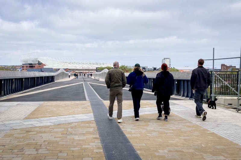 Saturday 25th April 2026 | The objective of today’s walk was to have a somewhat belated first look at Sunderland’s Keel Crossing footbridge. The city’s newest bridge links Keel Square with the Stadium of Light football ground and could have an impact on route options for the Weardale Way in the months and years ahead.